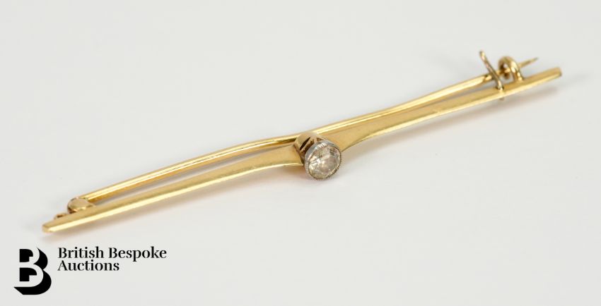 18ct gold and platinum bar brooch with a single old European cut diamond, colour J/K clarity SI, gross weight 3.12 gms.