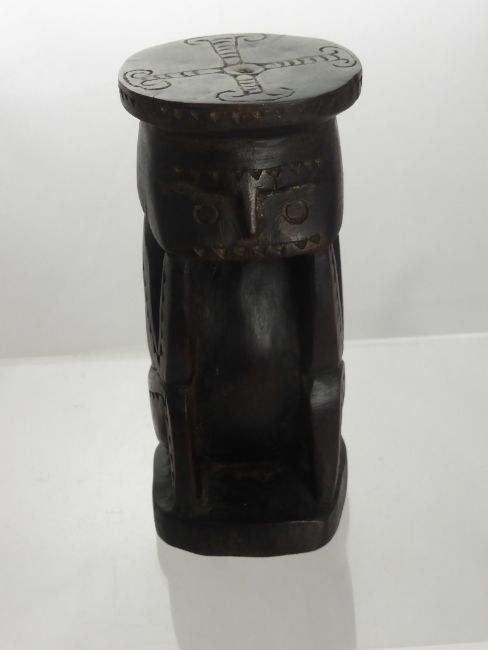 An Antique South Seas Hardwood Carving of a Monkey, depicted seated on its haunches, having decorative carving to arms and legs, having a flat form top carved with a cross, approx 16 cms Provenance: During the late 19th Century Reverend Arthur Henry Scrivin worked as a Methodist missionary for forty years amongst the Pacific Islanders, including Tonga, New Guinea, Fiji, Solomon Islands amongst others.