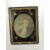 Three Victorian Oval Prints behind painted glass, the glass depicting classical figures, approx 25 x 35. (3)