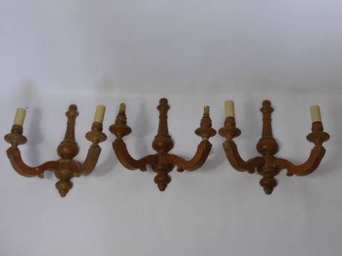 Three Fruit Wood Twin Branch Wall Sconces, approx 34 x 33 cms