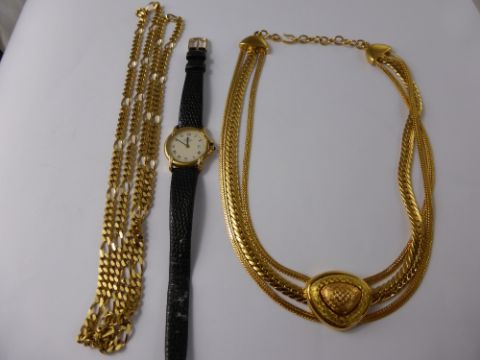 Miscellaneous Costume Jewellery, including two necklaces and a Raymond Weil gold plated watch.