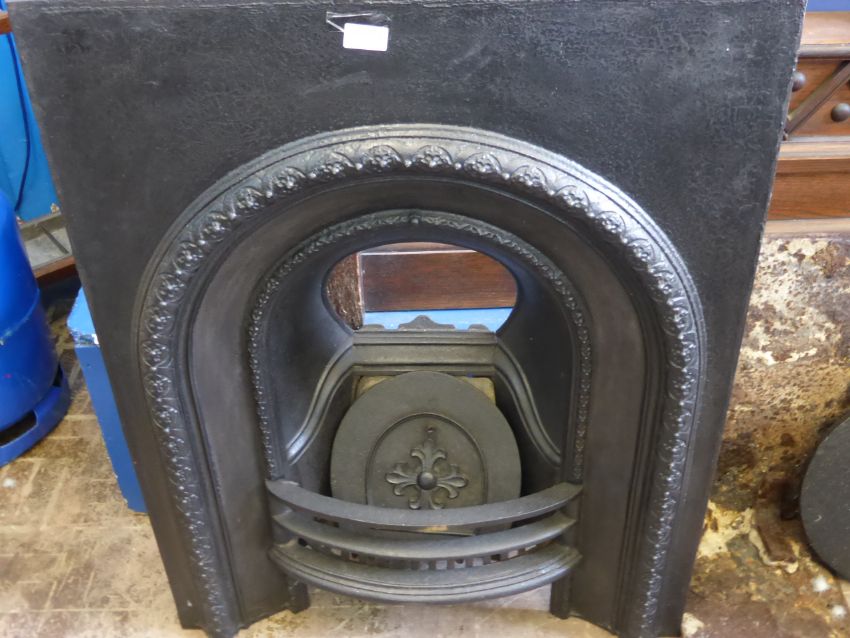 A Victorian Style Cast Iron Fire Basket and Surround