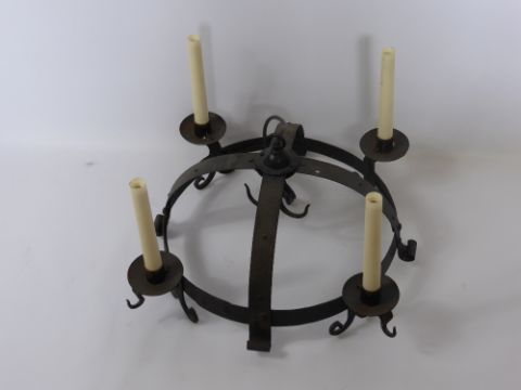An Antique (Medium) Cast Iron Game Crown, with candle sconce and game hooks.