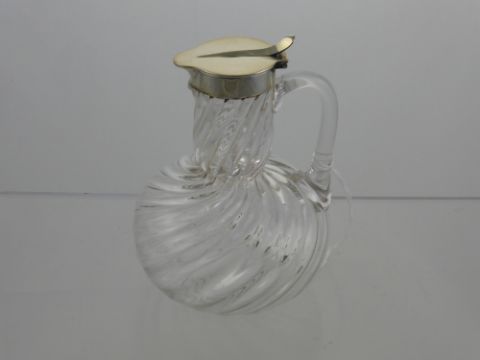 A Silver Topped Glass Water Jug, the jug having a thumb rest to the lid, Birmingham hallmark, m.m JG & S dated 1890.