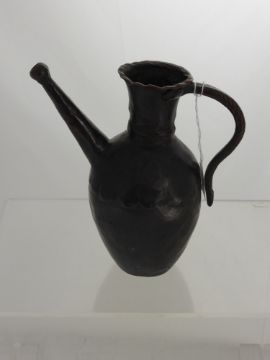 An Antique Bronze Ewer, with incised curved handle and straight spout, possibly 17th Century North Indian, approx 19 cms