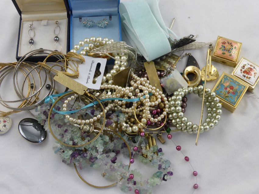A Collection of Miscellaneous Costume and other Jewellery, including necklaces, silver and blue stone earrings and bangles.