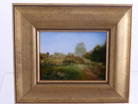 Three Original Miniatures, two by G.R. Vaughan, one depicting a countryside scene the other a heron in a forest pool and a further pastel by John Soar, ARMS, UAHS entitled Winter Evening, signed J.S. (3)
