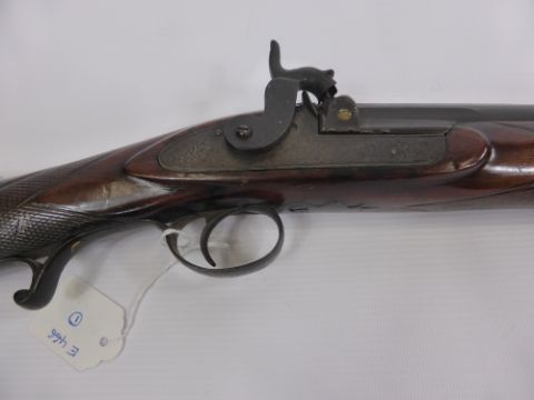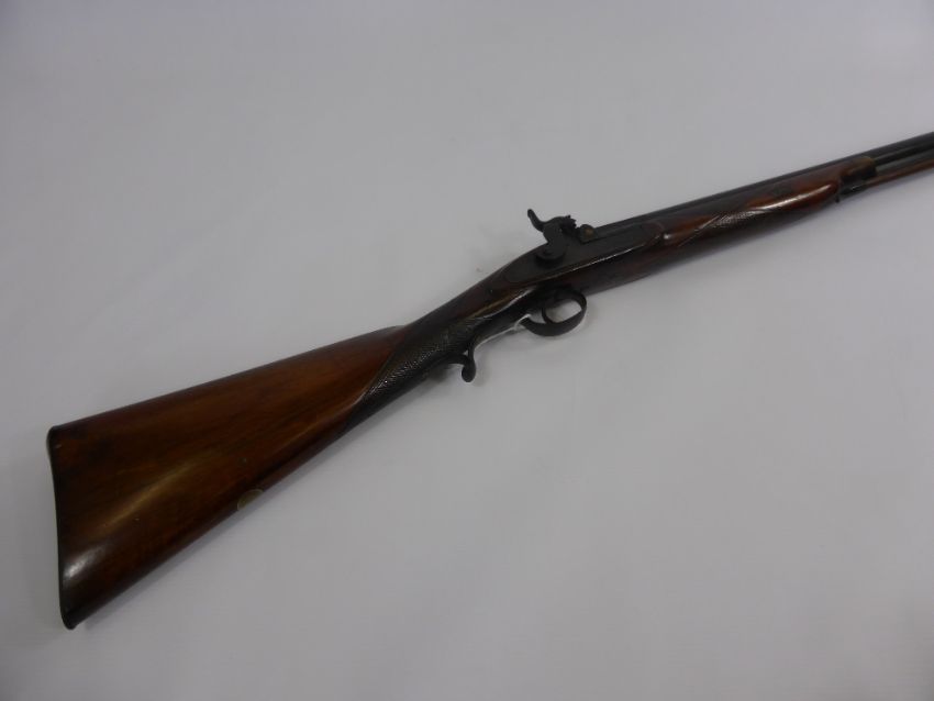 An Antique 10 Bore Single Barrel Percussion Muzzle Loading Shot Gun, Birmingham made, in good overall condition, engraving to lock, re-browned Damascus barrel, replacement ramrod, circa 1840, approx 81 cms