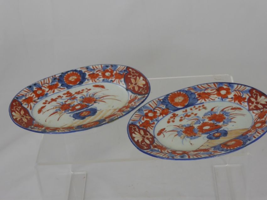 A Japanese Satsuma Fruit Bowl, hand painted with floral sprays and butterflies, approx 24 x 13 cms, together with two oval Satsuma dishes hand painted with floral spray, approx 21.5 x 16 cms.