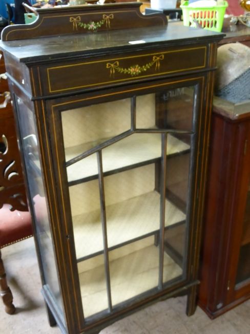 A Wooden Display Cabinet, painted with rose garland design, three shelves and glass front, approx 60 x 29 x 115 cms.