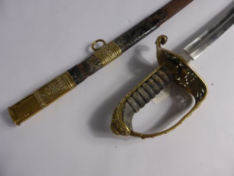 An Antique Prussian Officer's Dress Sword, the sword having brass hilt with chagrin grip, the blade by Weyersberg & Stamm, Solingen, approx 73 cms in length.