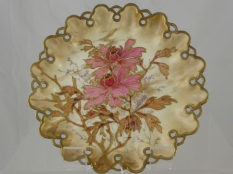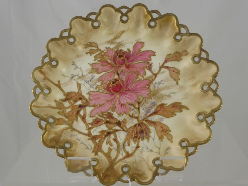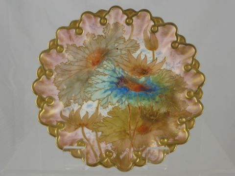 Two Doulton Burslem Ware Plates circa 1887, possibly by James Doulton, depicting peony with gilt highlights. (2)