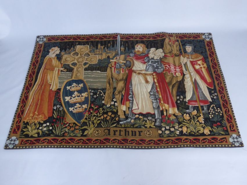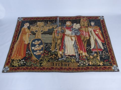 A Flemish Woven Tapestry Wall Hanging, entitled Quest for the Holy Grail , approx 142 x 97 cms.