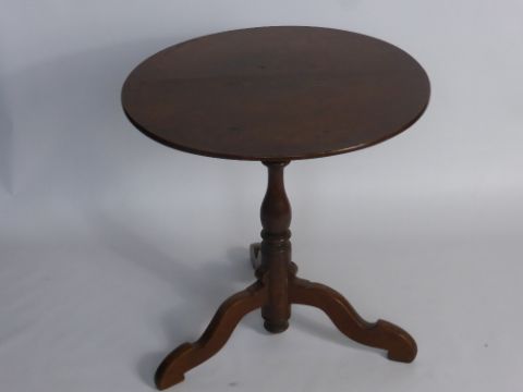 An Antique Oak Tilt-Top Table, on bird cage column and tripod base with swept feet, approx 60 x 63 cms