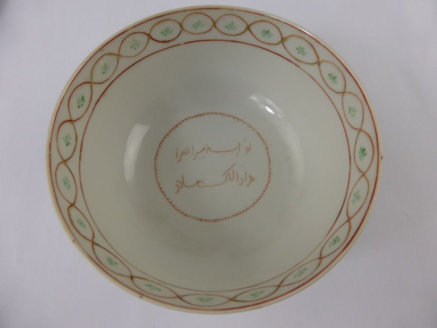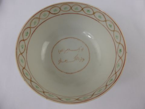 An Antique Hand Painted Porcelain Bowl, having Arabic script to bottom of with floral design to border together with a Quimper plate, Faiencerie de St Clement plate, Herend lattice work bowl, Royal Doulton pin dish, four Royal Worcester hand painted coasters and two Prattware dishes and a porcelain pill box.