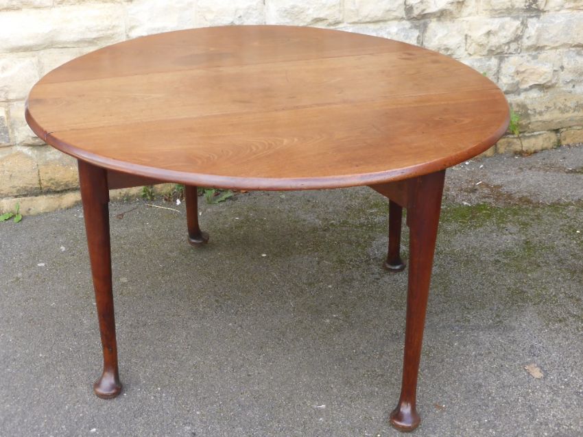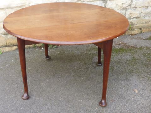 An Antique Oval Drop Leaf Mahogany Dining Table, with straight legs and pad feet, approx 126 x 123 x 72 cms.