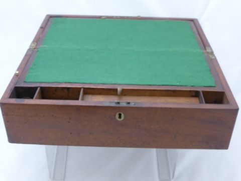 An Antique Mahogany Writing Box with brass carrying handles, approx 43 x 23 x 14 cms.