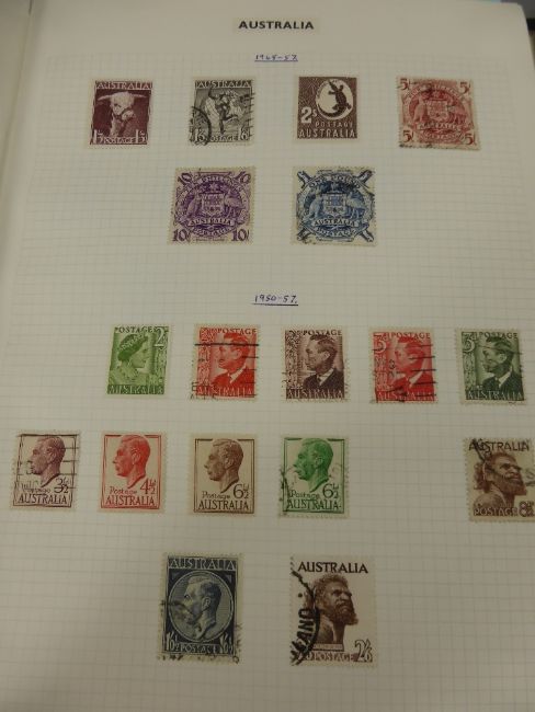 A Green Portland Stamp Album, containing George V - QE II Commonwealth including Aden, Australia, Barbados, Basutoland, Bechuanaland, British Guiana, Honduras, Burma (including Japanese occupation).