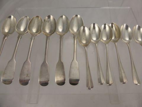 A Collection of Miscellaneous Silver, including six solid silver Victorian teaspoons, London hallmark dd 1842, mm George Angel and six rat tail teaspoons, Sheffield hallmark mm FC dd 1967, total wt 230 gms.