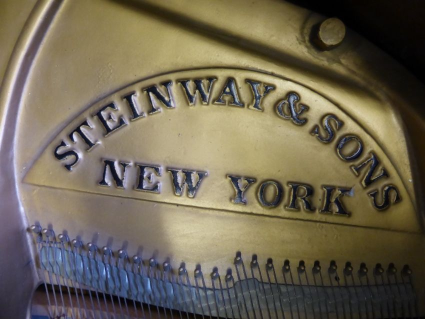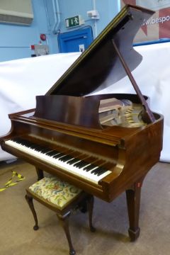 Steinway & Sons Mahogany Cased Medium Grand Piano, Nr 328819 date of manufacture 1949, the piano benefits from a Sostenuto pedal, supported on spade legs, Retailer N Stetson & Co, approx 170 x 143 x 100 cms
