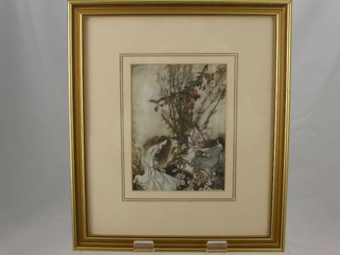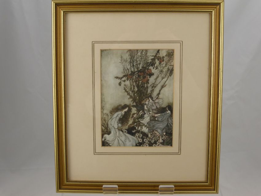 H. Hughes Richardson, Watercolour on Paper depicting Gloucester Street, Winchcombe, signed lower left dated 1923, approx 32 x 21 cms together with an Arthur Rackham print dated 1906 of Flower Fairies. (2)