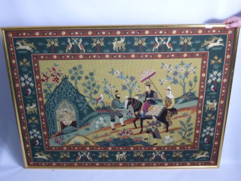 A Large Wall Tapestry Depicting a Persian Scene, approx 130 x 94 cms.