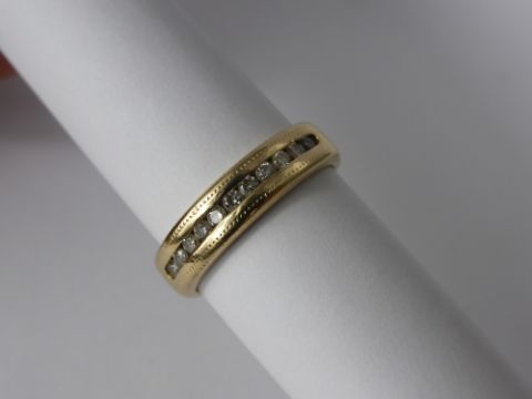 A Lady's 14 Ct Yellow Gold and Diamond Half Eternity Ring, the ring channel set with 11 dias, approx 22 pts of dias, size M approx 4.6 gms.