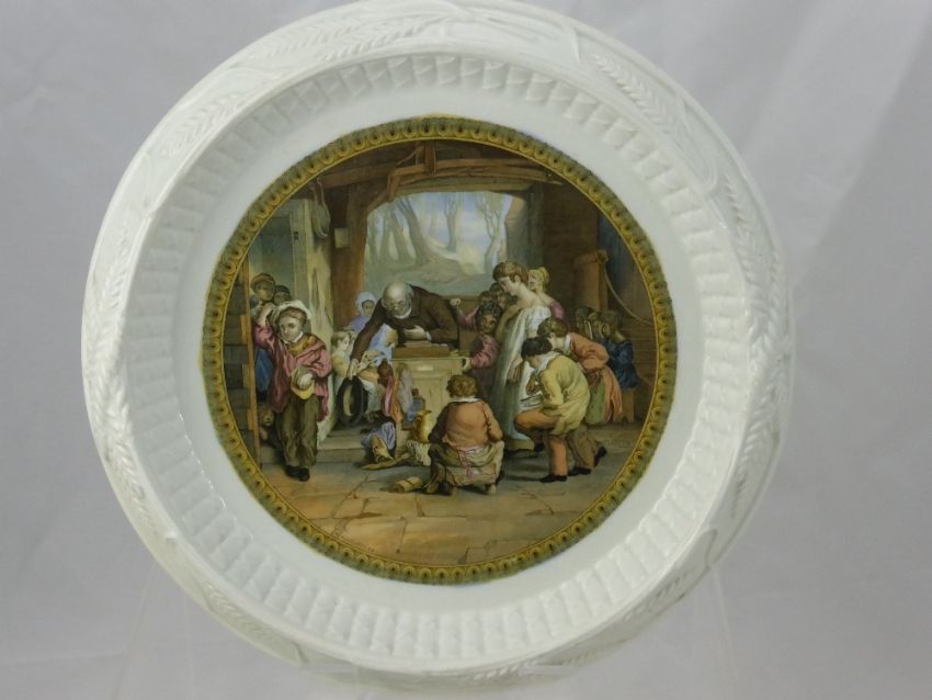 A Victorian Bread Plate, decorated with a Pratt Ware scene of a school, after Austin and Mulready, approx 33 x 3 cms