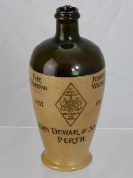 19th Century John Dewar & Sons Whisky Flagon, commemorating the Diamond Jubilee of Her Majesty Queen Victoria 1837 - 1897 with Royal Warrant to Her Majesty the Queen, approx 23 cms high.