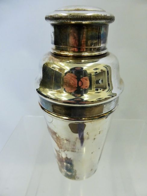 A Vintage Art Deco Silver Plated Cocktail Shaker, together a photo frame. (2)