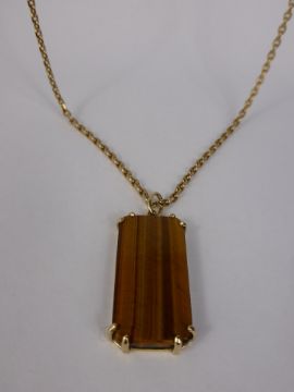 A 9ct Yellow Gold Tigers Eye Pendant, approx 3 x 1.5 mm, 5.0 gms suspended on a 9 ct yellow gold chain, approx 9.9 gms