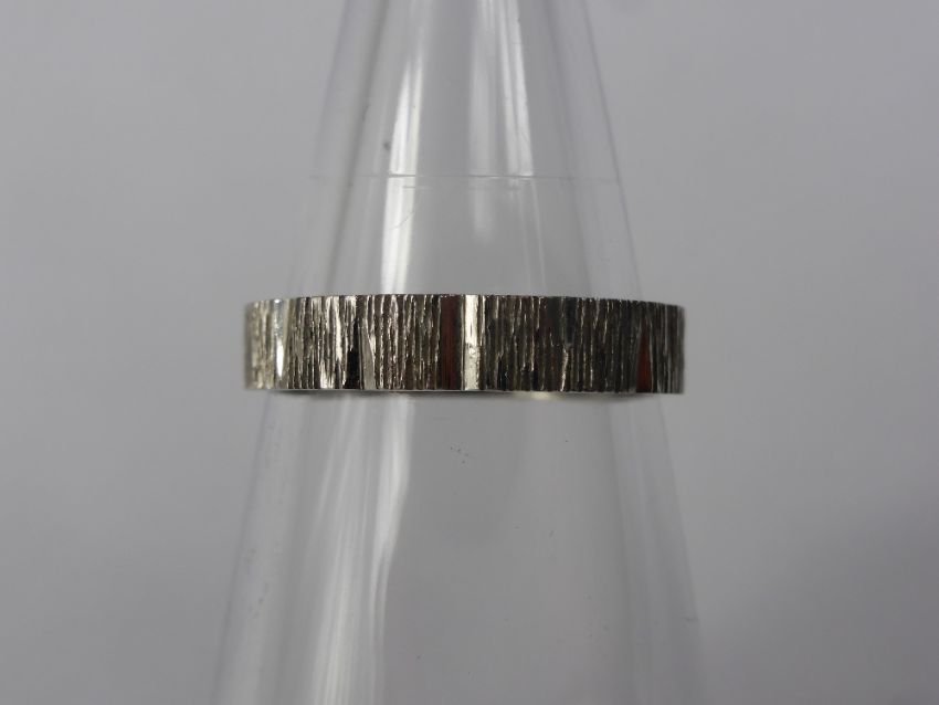 A Lady's 18ct White Gold Bark Finish Wedding Band, mm PP & P, size P, approx 3.9 gms