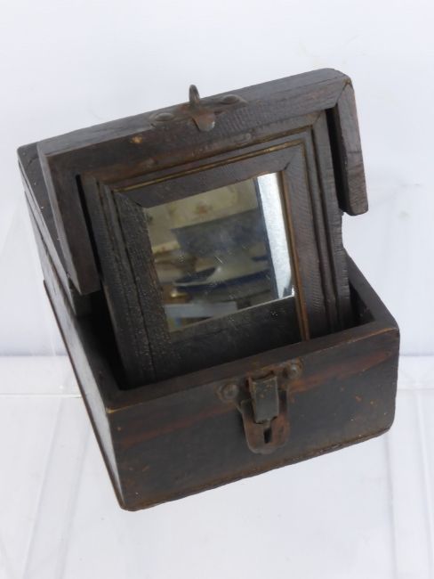 A Continental Mahogany Campaign Shaving Box and Mirror.