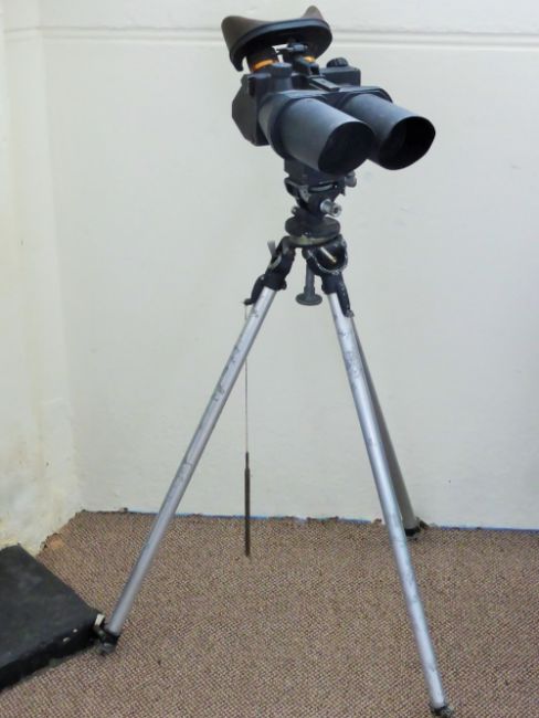 WWII German 10 x 80 'Flak Binoculars', with the original tripod, padded visor and lens shields. Jos Schneider & Co, Kreuznach, Germany (DKL). Optically superb with working internal filters.