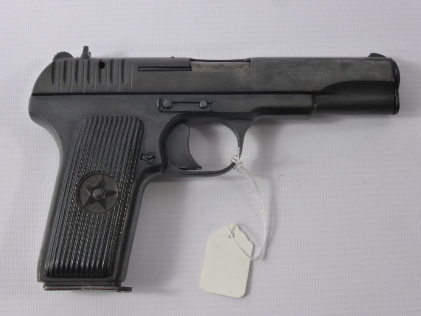 WWII Russian 7.62mm Tokarev Semi-Automatic Pistol, early model with no safety catch. 'Old Spec' deactivation with certificate dated 1995. Strips, cocks and dry fires.