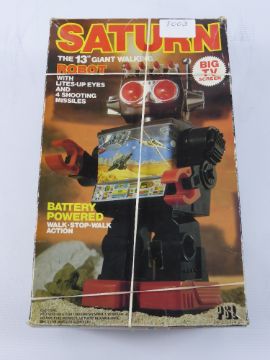Part Book of Christian Knowledge, circa 1810, approx 100 hand coloured plates depicting various animals together with a vintage Saturn Robot, 13", giant walking robot in original box.