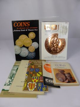 A Collection of Miscellaneous Items, including coins, 1937 George VI Specimen Set, Queen Elizabeth II sixpences set, £2 proof, 1992 ECU set, silver 3d together with vintage slide rule, concise ground slide rule, vintage steel tape measure, AA car badge, miscellaneous coin books.