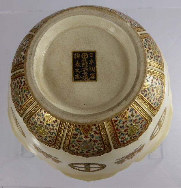 A Japanese Satsuma Bowl, depicting a warrior slaying a bird, character marks to base.