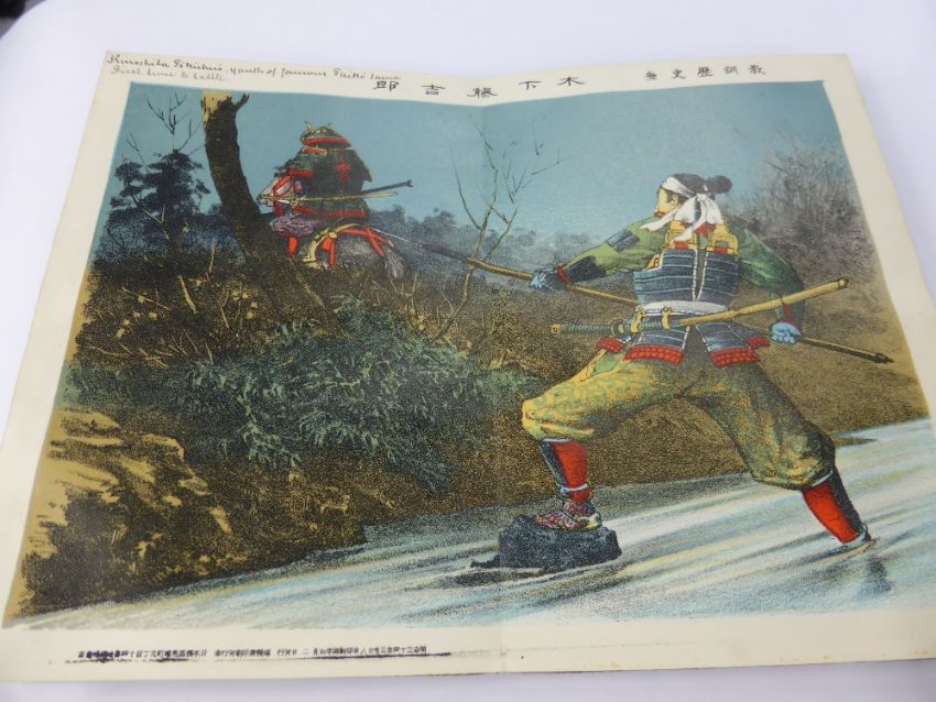 A Japanese Illustrated Book entitled '"Anecdotal History Painting" with paintings depicting Samurai warriors, favoured servants and Emperors, approx 18 x 12 cms, with approx 14 illustrations in total.