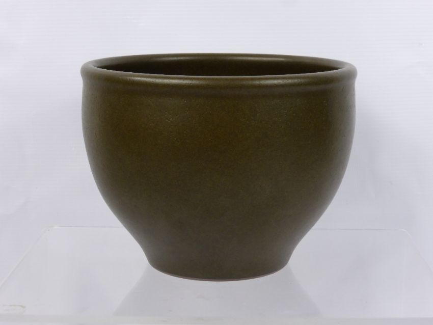 A Chinese Tea-Dust Glazed Miniature Jardiniere, slight tapering form on circular base, Yongzheng seal to base, approx 15 cms