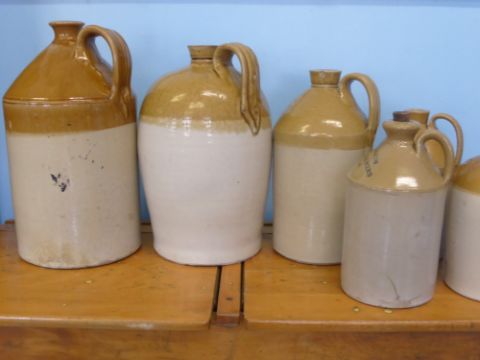 A Miscellaneous Collection of Pottery Ale Jugs, including C. Ward, Lamb Hotel, Cheltenham, John Dobell & Co., Tewkesbury (6).