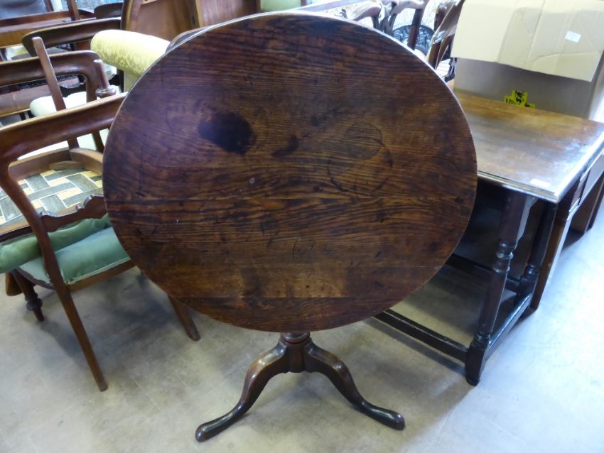 An Antique Oak Tilt Top Table, the table having turned column with hoof feet, approx 79 x 69 cms.