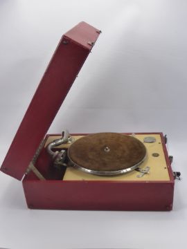 A Vintage Decca 50 Portable Gramophone, red and cream fitting.