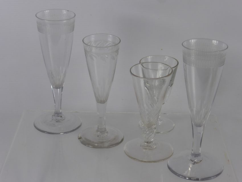 Five Georgian Shropshire Glass, including three flutes and two wine glasses. (5)
