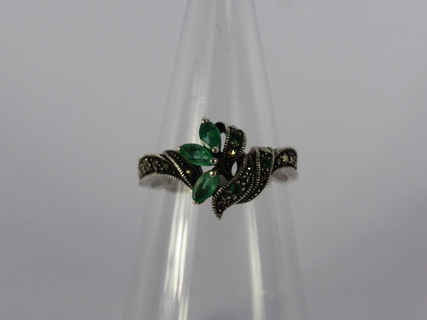 A Lady's 9 Ct Gold Amethyst Ring, size T, approx wt 4.2 gms together with a silver marquisette and emerald ring, size T.