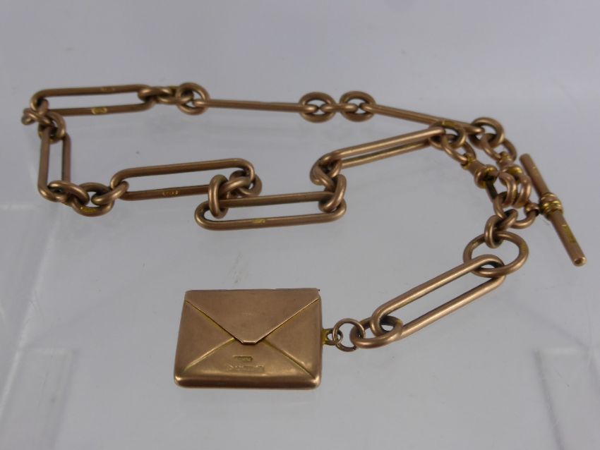 An Edwardian 9ct Gold Fob Chain and Stamp Envelope, approx 57.8 gms.