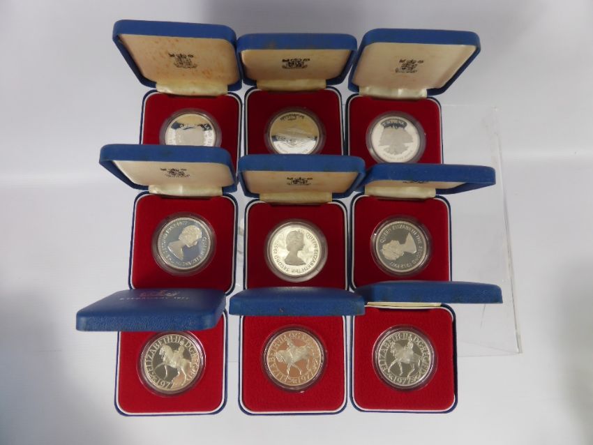 A Collection of 19 1977 Miscellaneous Solid Silver Royal Mint Proof Coins, including Mauritius, Falkland Islands, Gibraltar, Commemorative etc., with original certificate.