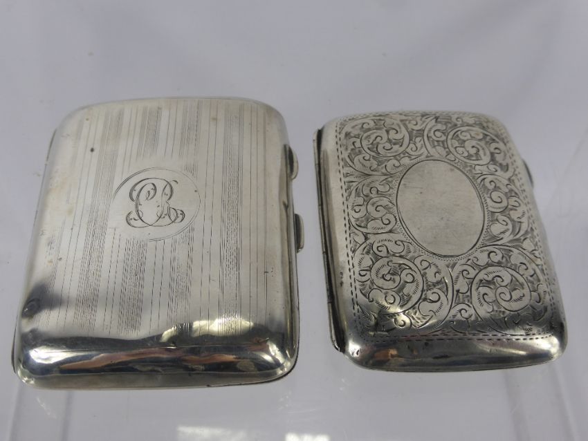 Two Solid Silver Cigarette Cases, Chester hallmark dd 1918, mm T. & S., Birmingham hallmark dd 1911 mm S & B, approx 153.5 gms. (2)