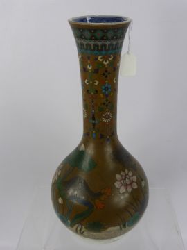 An Oriental Baluster Vase, depicting a water lily with floral design to neck, approx 38 cms high.