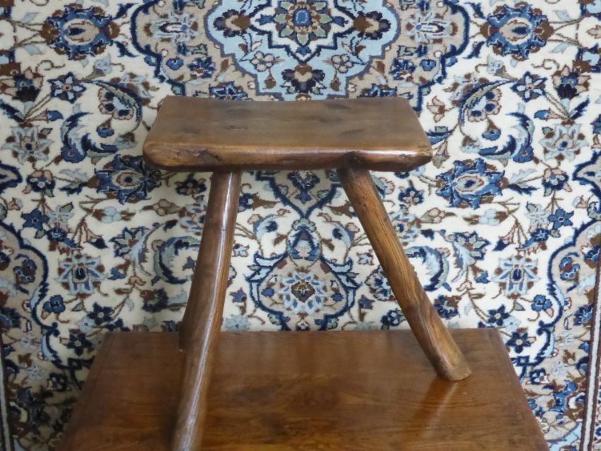 An Antique Yew Wood Square Seated Stick Stool, approx 33 x 26 x 38 cms.